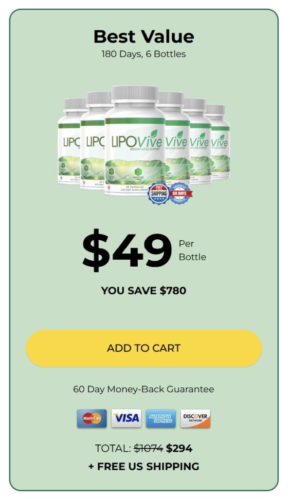 Lipovive is a thoughtfully crafted supplement that combines natural, well-researched ingredients to support your wellness journey. From promoting gentle detoxification and liver health to supporting digestion, energy, and daily balance, it offers a holistic approach to feeling your best. Many users have reported positive experiences, including increased energy, improved focus on healthy habits, and a greater sense of overall vitality. With a 60-day money-back guarantee and exclusive access through the official website, trying Lipovive is completely risk-free. If you’re ready to enhance your wellness routine and experience the benefits of this carefully formulated natural supplement, click the button below to secure your bottle today.